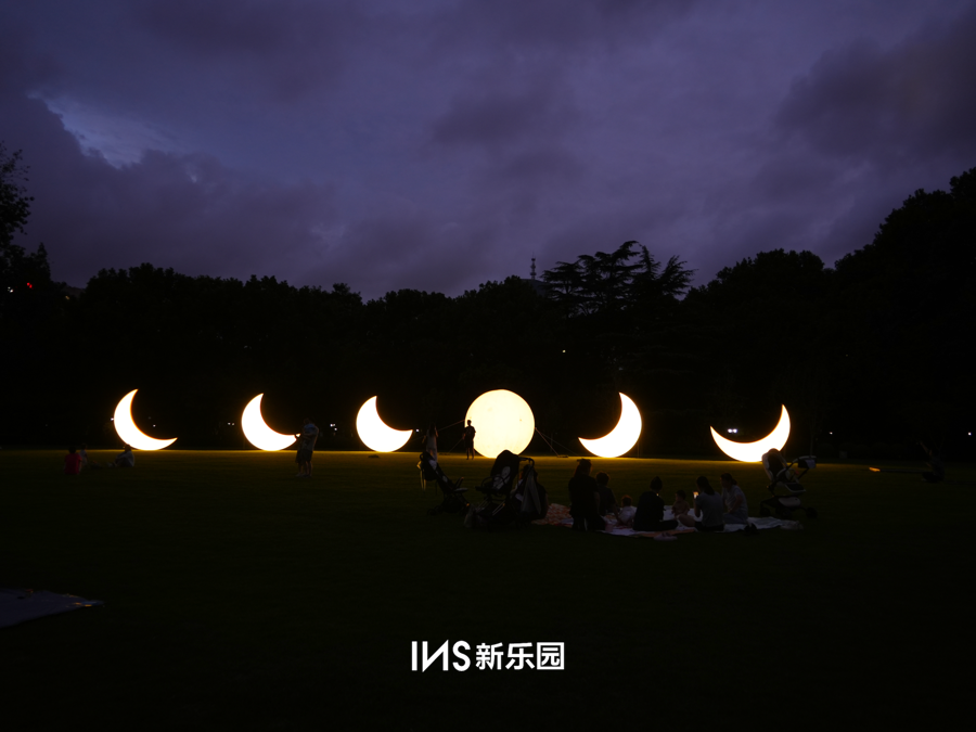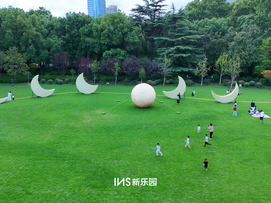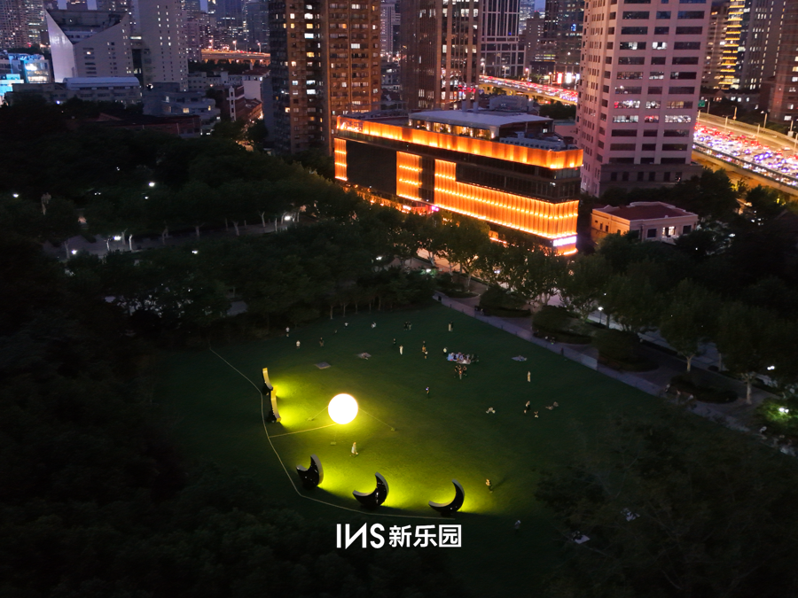 本届“环复兴公园艺术季”由黄浦区多部门指导,复兴公园、INS新乐园、思南公馆等区域文化地标共同参与。9月23日,大型艺术装置《月地徐徐》已率先落地复兴公园。该装置由艺术家王嘉弋创作,六组月相灯光装置沿复兴公园草坪有序排布,生动再现从新月到满月的天体运行轨迹。作品将科技手段与艺术创意深度融合,在百年历史的公园场景中构建起“可观、可感、可思”的公共景观,既把“宇宙循环”的宏大主题转化为贴近市民生活的文化现场,也引导公众重新审视传统节日的文化内涵、自然规律的人文价值,实现“以艺术润心、以文化聚力”的传播效果。